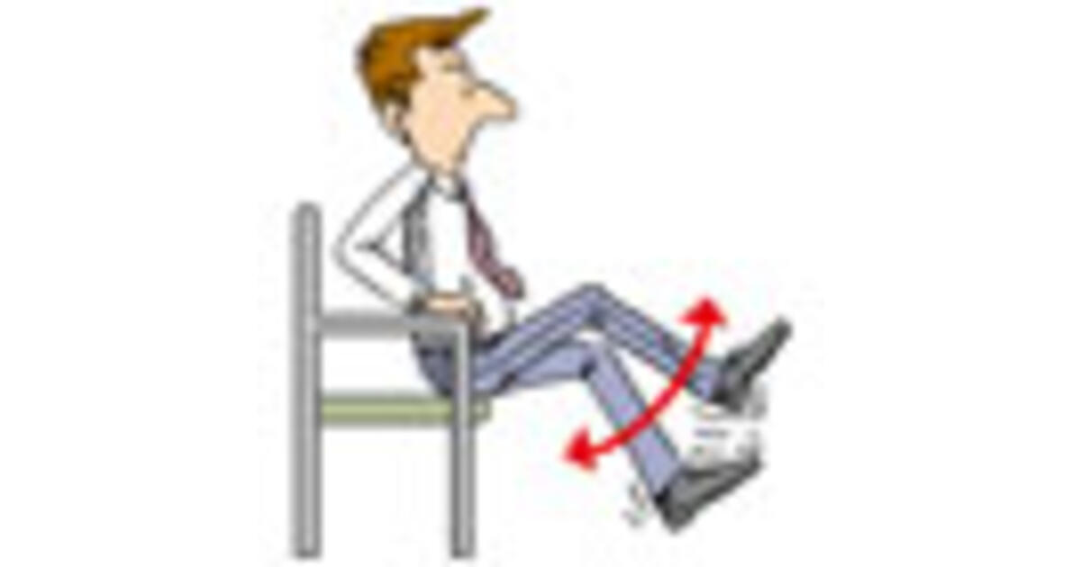 イスに浅く腰掛け、下腹に力を入れながら、ゆっくりと足を交互に10回ずつ3セット。腰は反らないで!