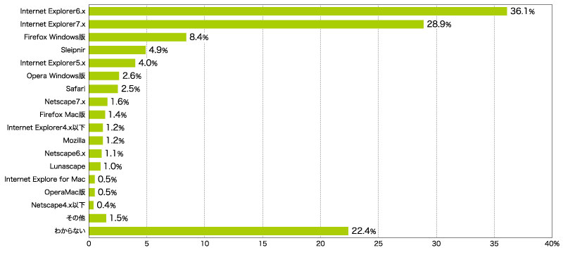 もしあなたのビジネスが官公庁や大企業、銀行などの金融機関のような会社に対するアピールが重要であれば、この数字は大変重要になってくる。一般消費者が使うブラウザやOSのバージョンに関しては『インターネット白書2007』などの調査を参照すれば問題ない(図5)。ところが、企業や官公庁の視聴環境は、これとは大きく異なることがあるからだ。