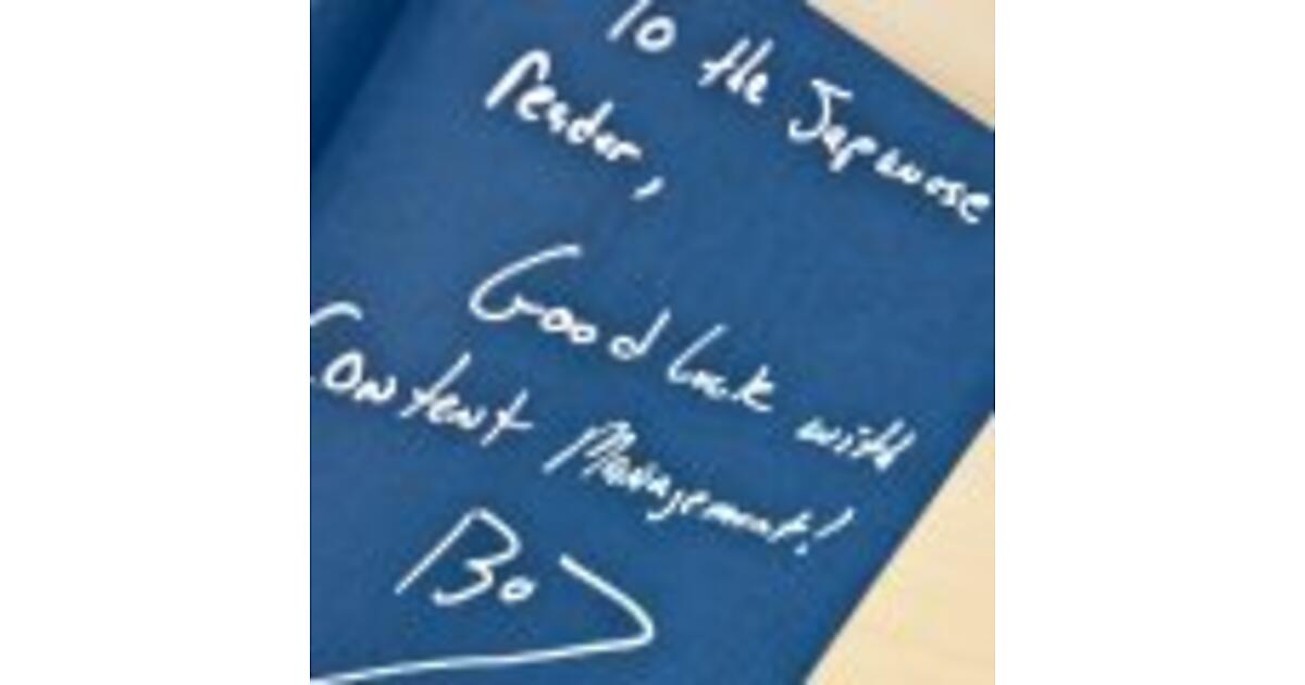 - 『コンテンツマネジメント パーフェクトガイド 基本・計画編~コンテンツ管理の考え方からCMSの導入計画まで』 ボブ・ボイコ氏サイン入り
