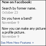 でも、これらの新機能に関する説明は、ブログ上でしか見ることができない(「Facebookについて」のページにさらに深く隠されているリンクは勘定に入れていない)し、新たにリリースされた機能へのリンクはまったく存在しない。