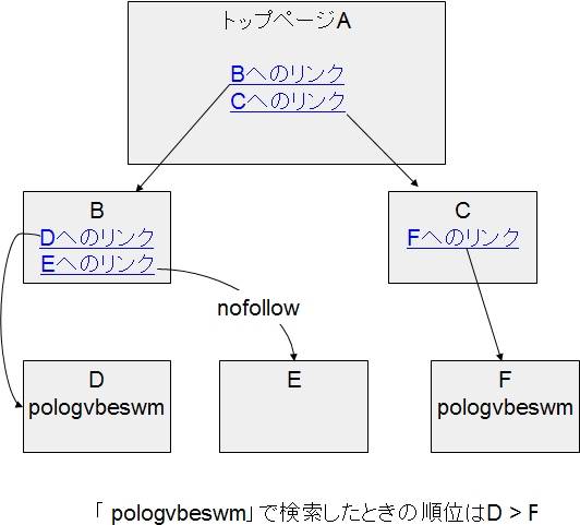 僕は以前、Sphinnの「なぜnofollowに関してRandが書いた記事が間違っているのか」スレッドで、こうした検証の実例について投稿したことがあり、nofollow属性によるリンクジュース調整効果の有効性について議論した(該当部分の一部を以下にコピーした、図はWeb担編集部)。