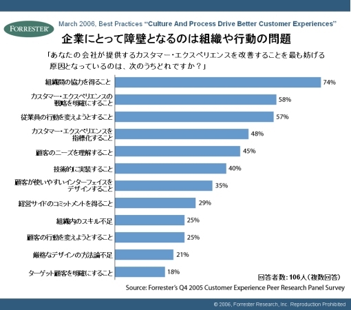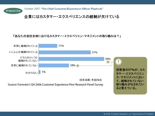 フォレスター・リサーチが2006年に行った調査では、57%の企業がカスタマー・エクスペリエンスが会社全体でうまくできていないという結果がでました。