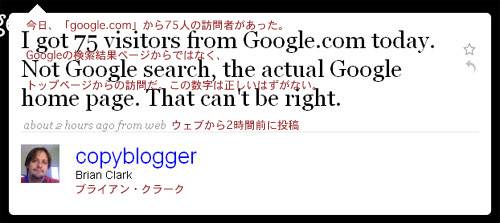 これは一大事だ! どんなキーワードやキーフレーズが自分のサイトのページにトラフィックをもたらしているかを知ることは、非常に重要なことだ。この情報が奪われてしまうとしたら、生まれたばかりのわが子を病院から家へ連れて帰ろうとしたとき、新生児室には他にも赤ん坊が50人もいるのに、どの子も身元を示すブレスレットをつけていないというのと似たような状況になるだろう。