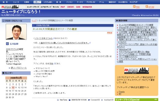 YouTubeに日本オラクル公式チャンネルをオープンしたのと同じ時期に、ITmediaオルタナティブ・ブログで玉川さんがブログを開設しました。
