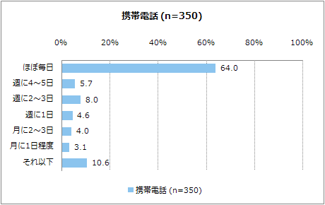 - 携帯電話でのインターネットの利用頻度は高く、「ほぼ毎日」が6割を占める
