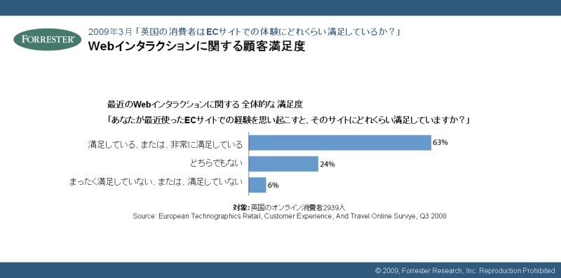 「あなたが最近使ったECサイトでの経験を思い起こすと、そのサイトにどれくらい満足しましたか?」有名企業のWebサイトの利用に関する消費者の満足度について、フォレスターは2008年末に、ヨーロッパでアンケート調査を行いました。対象は英国、イタリア、ドイツ、フランス、オランダ、スウェーデン、デンマークの7か国です。