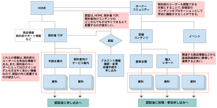 - サポートコンテンツ:潜在顧客~サービス経験者に向けた訴求(「充実したサポート提供で顧客満足度を向上させるための法則」参照)