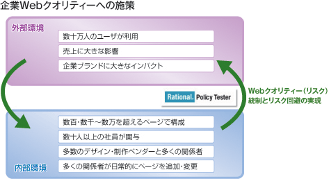 そこで今、世界の大手企業で導入が進んでいるのが、Policy Testerだ。島田氏によればPolicy Testerとは、「企業マネジメントやWebチームを守るための高性能CTスキャン」の役割を果たすツール。Webサイトの全ページを"スキャン"し、どんな問題がいくつ潜んでいるか、どの問題を優先的に解決すべきかを示してくれる。これにより、Webサイトへの統制(内部統制)を包括的に実現し、品質とリスクを統一的に管理できるようになるという。