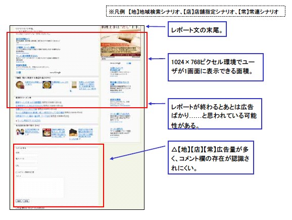 コメントの獲得を重視するのであれば、広告の量(画面上の縦幅)を減らして、レポート文末尾とコメント欄がブラウザの1画面内で両方表示できる程度にします。その上で、レポート文の内容と関連づけて「(他のメニュー)を試してみた方はコメントをどうぞ!」のような文言で誘導しましょう。