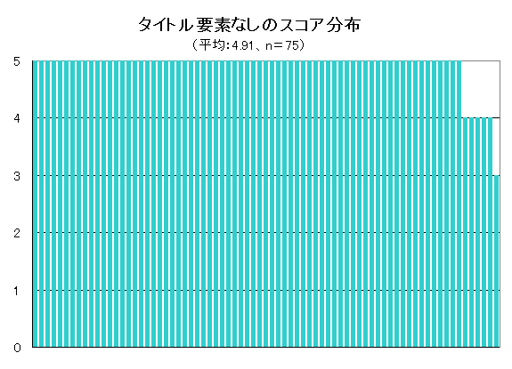 平均スコアが最も高かったのは「title要素なし」で、4.9ポイント(グラフ2)。多くのサイトでタイトルがきちんとつけられており、漏れがみられたのは75サイト中6サイトだけだった。ただし、今回の調査ではtitle要素の有無のみで判断しているため、複数のページで同じタイトルが付けられていても減点していない。実際にはタイトルが重複しているケースも多く見受けられるため、実質的にはこれよりも評価は低いと考えていいだろう。