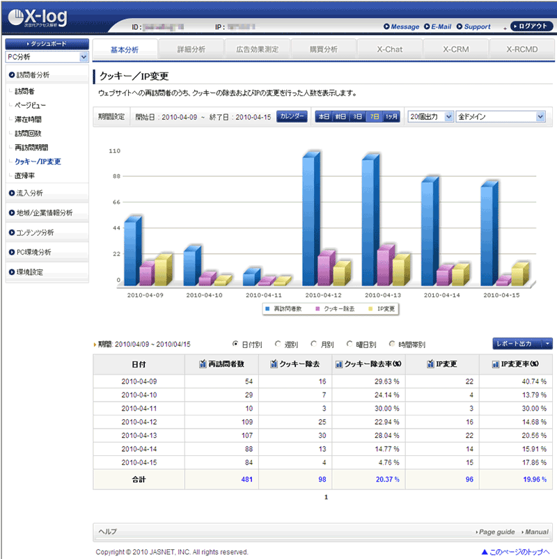 X-logの最大の特徴が、クッキーが削除されてもIPアドレスが変わっても、ユニークユーザー(ユニークブラウザ)を識別できる機能だ。