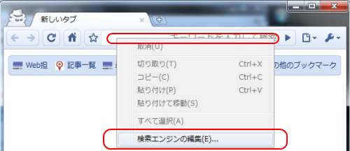 ロケーションバーを右クリックして[検索エンジンの編集]をクリックする。