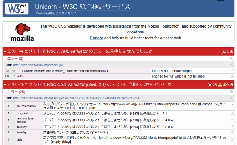 (W3C)W3C(WorldWideWebコンソーシアム)が、HTMLとCSS(とモバイルとフィード)に文法間違いがないか一括で検証できる「Unicorn(ユニコーン)」というツールを公開した。サイト作成時に文法エラーがないか確認するのに便利だ。