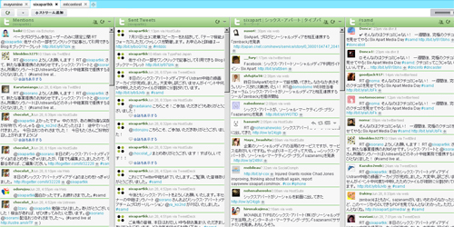 絶賛愛用中です。最近日本語化され機能も強化し、ますます便利になりました。私の場合、HootSuiteを使って個人のアカウント、会社アカウント、そして期間限定運用の「Movable Type コンテスト2010」のアカウント、これら3つをHootSuiteのタブで管理しています。さらに@sixapartkk(Mentions)のカラム、自分が送信したつぶやきのカラム、「Movable Type」や「シックス・アパート」「タイプパッド」などの会社名や自社製品に関するキーワードの検索結果をカラムに登録して管理しています。また自社でイベントを行った場合などにイベント用にハッシュタグを設定するのですが、そのハッシュタグをカラムに追加して、随時参加者の声を監視・サポートする時にも便利です。