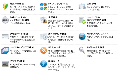 - 企業サイトに必要な多数の機能を標準実装
