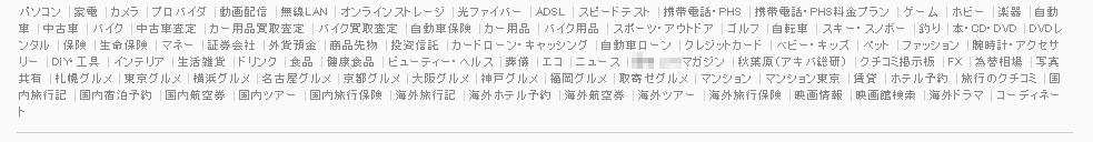ぐるナビさんと同じグルメ系のサイトであるが、“いただけない”フッターリンクに思える。サイト自体は有益なコンテンツを提供しており日本を代表するグルメサイトである。検索エンジンの評価も高いと思われるのでネガティブな評価は受けていないようにも思える。大人の事情もあって設置しているのかもしれない。だが無関係なジャンルのサイトへのリンクをキーワードだけのアンカーテキストでフッターに密集させるのは、筆者は推奨しない。一般のサイトではプラスよりもマイナスの影響が出てくることもありそうだ。