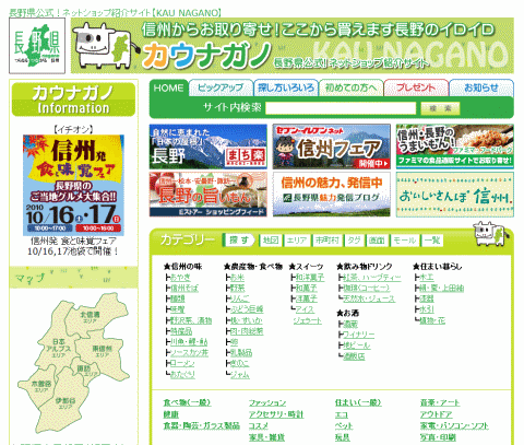 長野県商工労働部は9月29日、長野県内の事業者が運営するECサイトを紹介するポータルサイト〈カウナガノ〉を開設したと発表した。インターネット活用型販路開拓促進事業の一環として展開する。