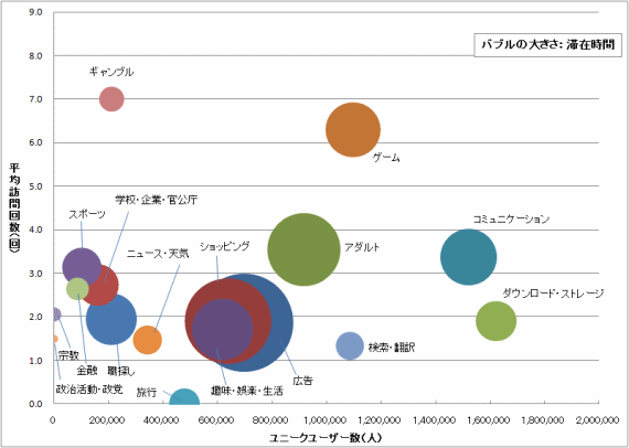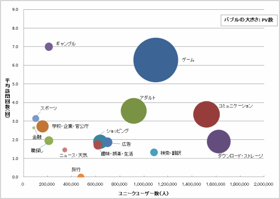 | カテゴリー | ユニークユーザー数(人) | 平均訪問回数(回) | 延べPV数(PV) |