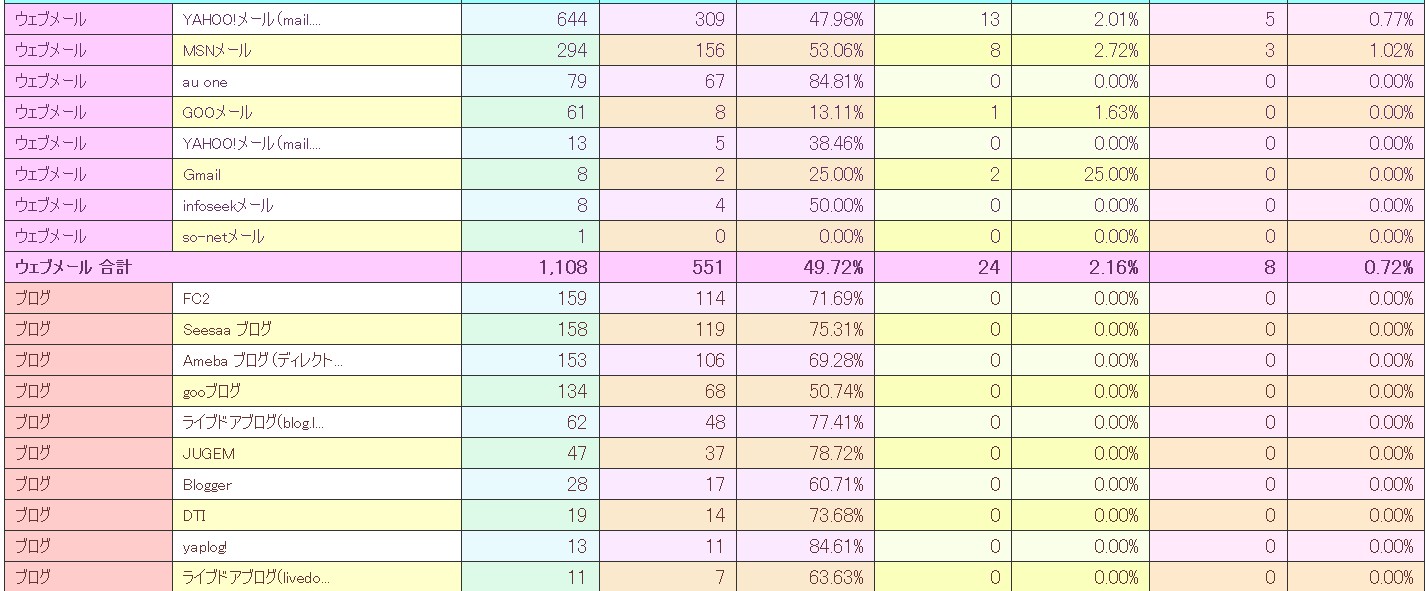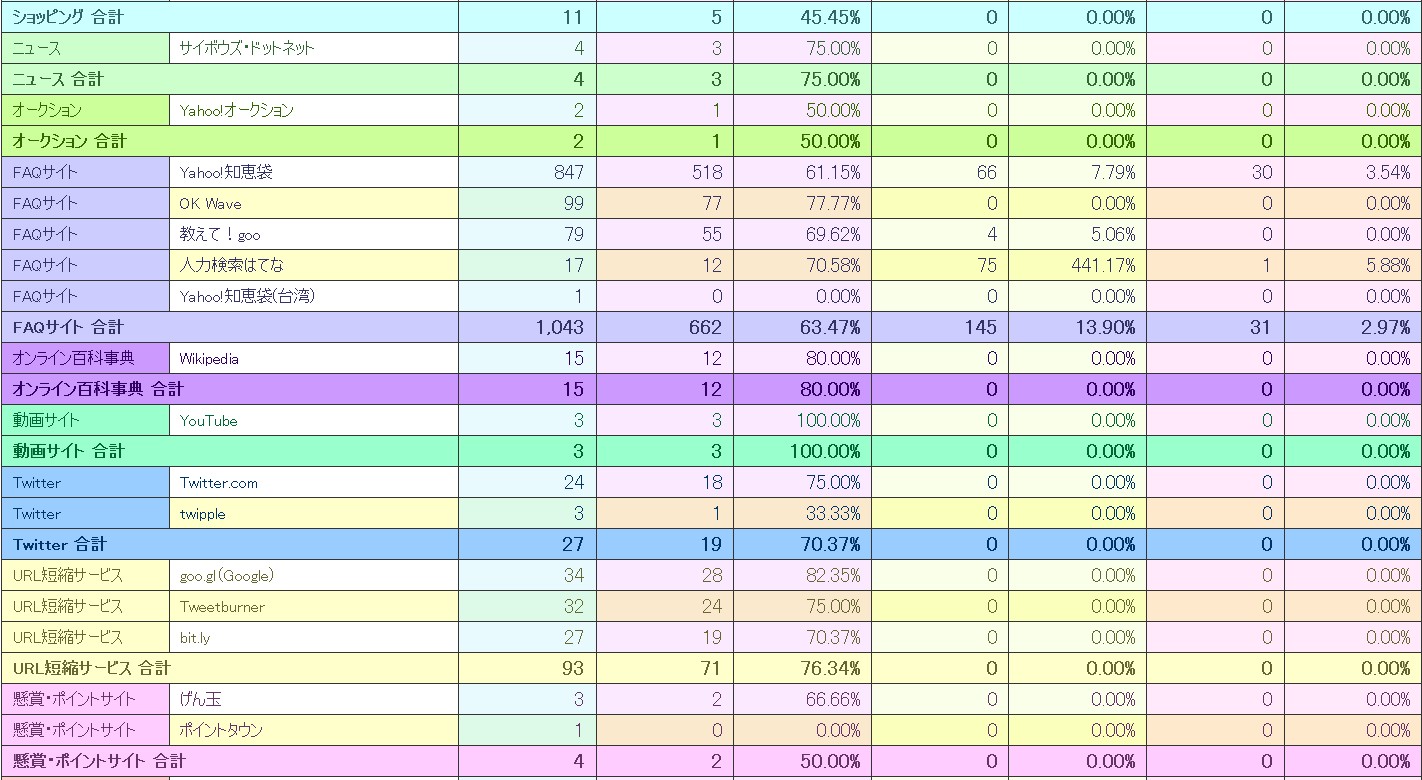 たとえば、こちらはブログやウェブメールという単位でグルーピングされています。多くのアクセス解析ツールでは、単純にリファラーやドメイン名をそのままの名称で集計して表示しています。しかしチーターでは、「日本語化」⇒「グルーピング」といった作業を行っているため、レポートがわかりやすくなっています。かゆいところに手が届いていますね。