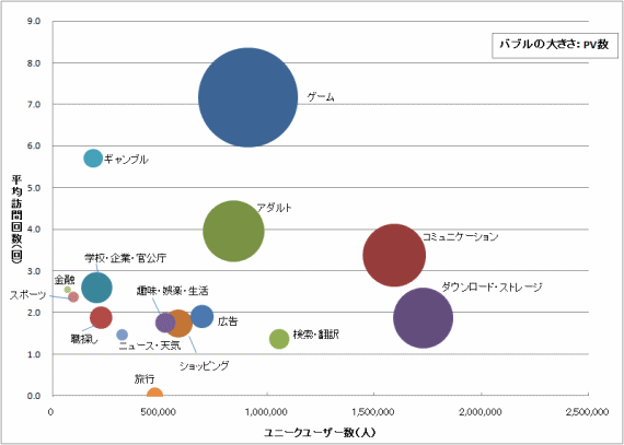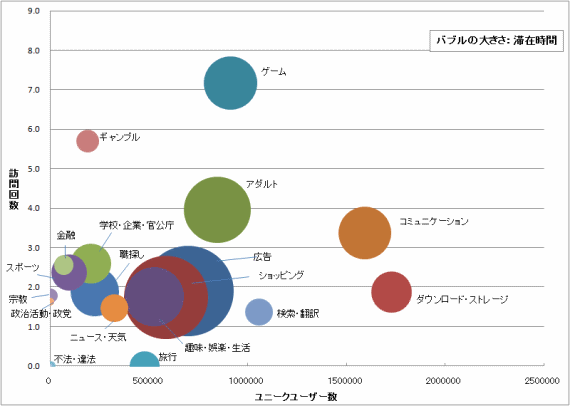 | カテゴリー | ユニークユーザー数 | 訪問回数 | 滞在時間 |