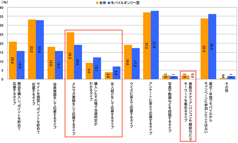 会員登録やメルマガ登録が必要もの、複数のメディアと連動したキャンペーンなど、応募までにいくつかのステップを踏むようなキャンペーンの参加率は低くなっています。