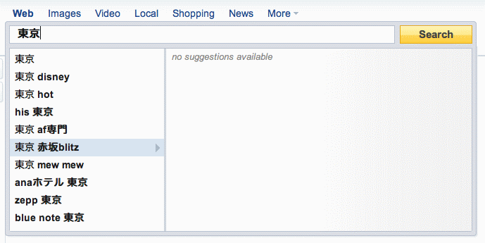 ちなみに、グーグルのインスタント検索は日本語の検索にも適用されるが、米ヤフーのサーチダイレクトでは、日本語の検索にはキーワード候補こそ表示するものの、残念ながら関連ページの情報は表示されない。