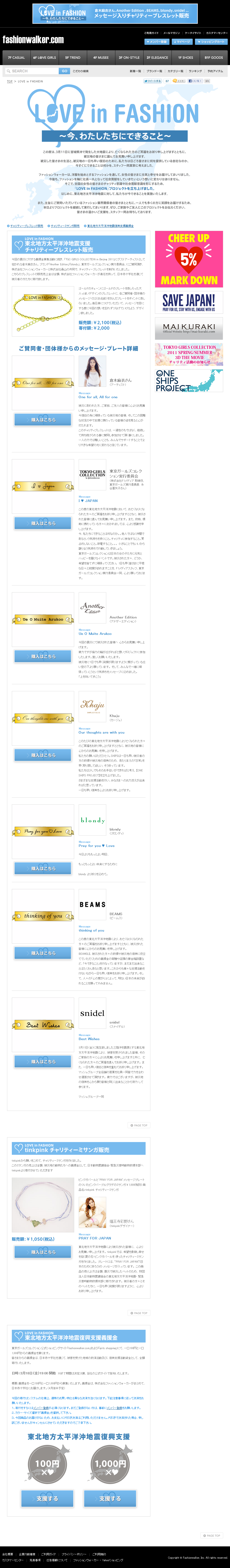 ファッションウォーカーは女性シンガーの倉木麻衣さんたちとチャリティブレスレットをつくり、販売している。グッズの売り上げは全額寄付する。