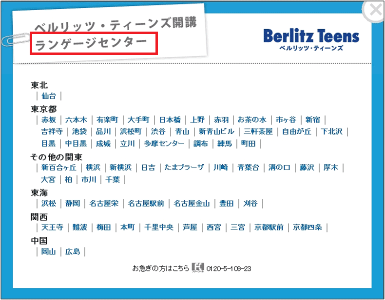 結局、ベルリッツの社内用語では、各拠点(学校)のことをランゲージセンターと表現するようなのだが、ユーザー目線に従うのなら、「拠点」や「学校」「教室」などといった、とか平易な言葉で表現した方がよいのではないかと思った(次回へ続く)。