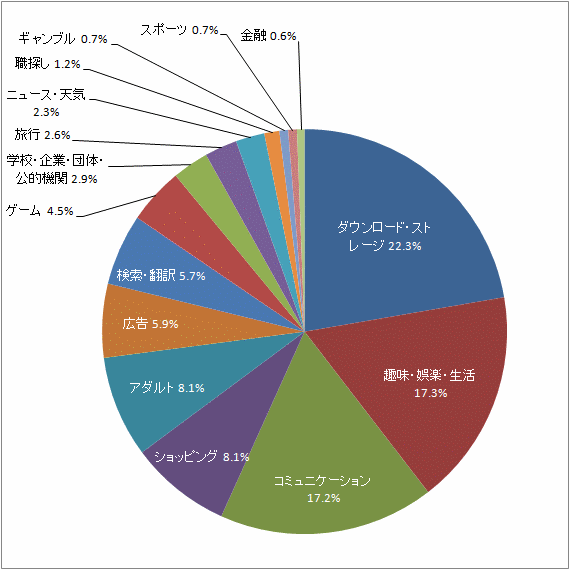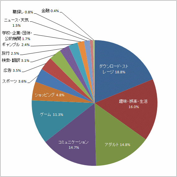 myRTモバイル利用サイトのカテゴリー比率(ユニークユーザー数)