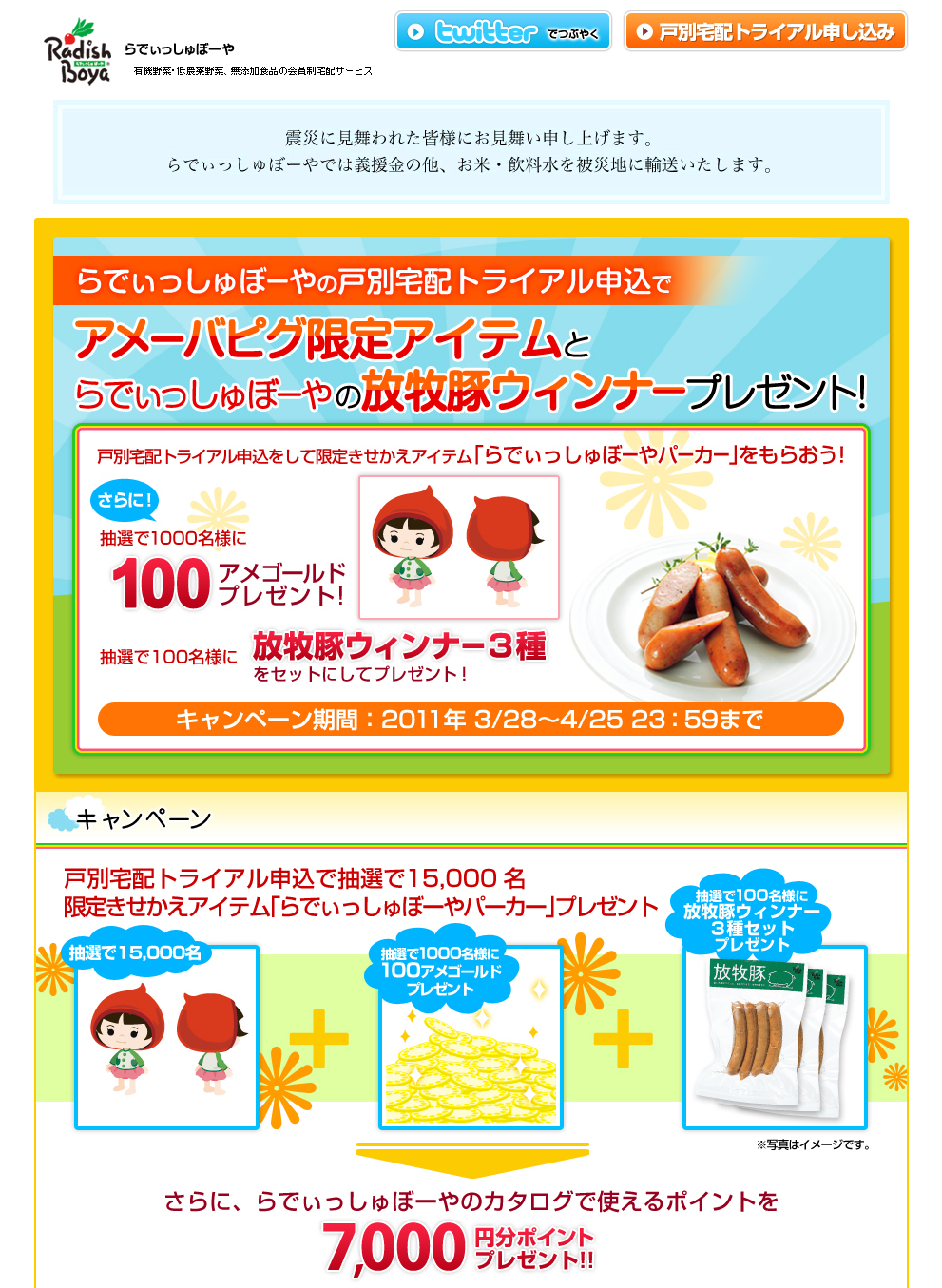 しかし、2011年3月に震災が起き多くの物流インフラに支障が生じていたなかで、被災地へのお見舞いメッセージとともに、独自の物流インフラを持つ同社が被災地へ飲食品を輸送していることを併せて記載したクリエイティブに変更したところ、クリック率も向上し、コンバージョン率は以前のキャンペーン訴求型のクリエイティブに比べ約2.4倍になったとのこと。