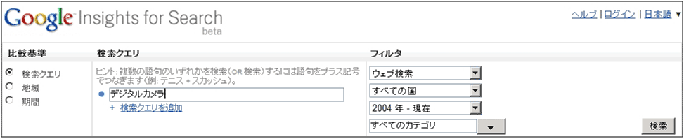 図10:「Google Insights for Search」の検索画面