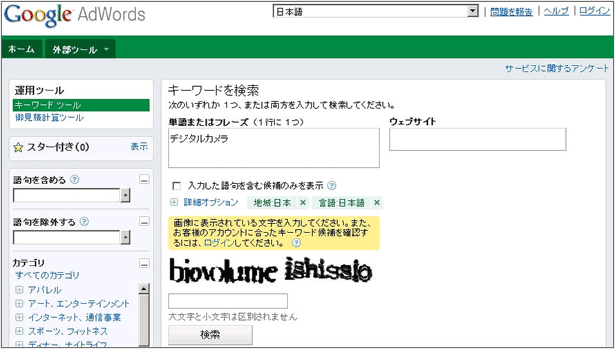 図12:「Google AdWords」の「キーワードツール」