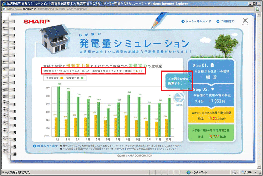 この結果表示画面のページで、「この図をお金に換算すると……」というリンクがある。ようやくお目当ての情報である「発電によって浮くお金」の話が聞けそうだ。