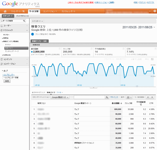 唯一のメリットは、WMTでは過去1か月分ほどしかデータを確認できないのに対して、GAではさらに過去に遡って確認できることでしょうか(それでも今のところは2011年3月31日からのデータしか見られませんでした)。