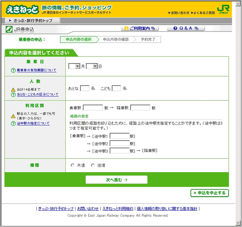 乗車券の申込はスムーズに進むだろうか?