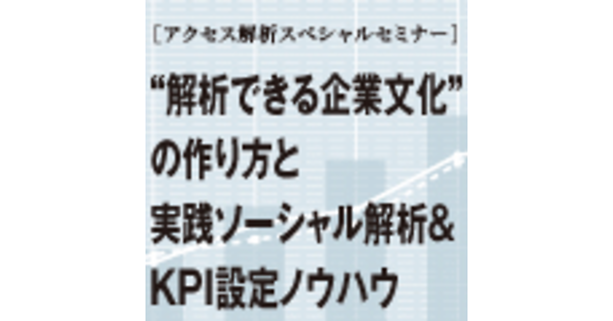 | セミナータイトル | Web担当者Forumアクセス解析スペシャルセミナー “解析できる企業文化”の作り方と 実践 ソーシャル解析&KPI設定ノウハウ |
