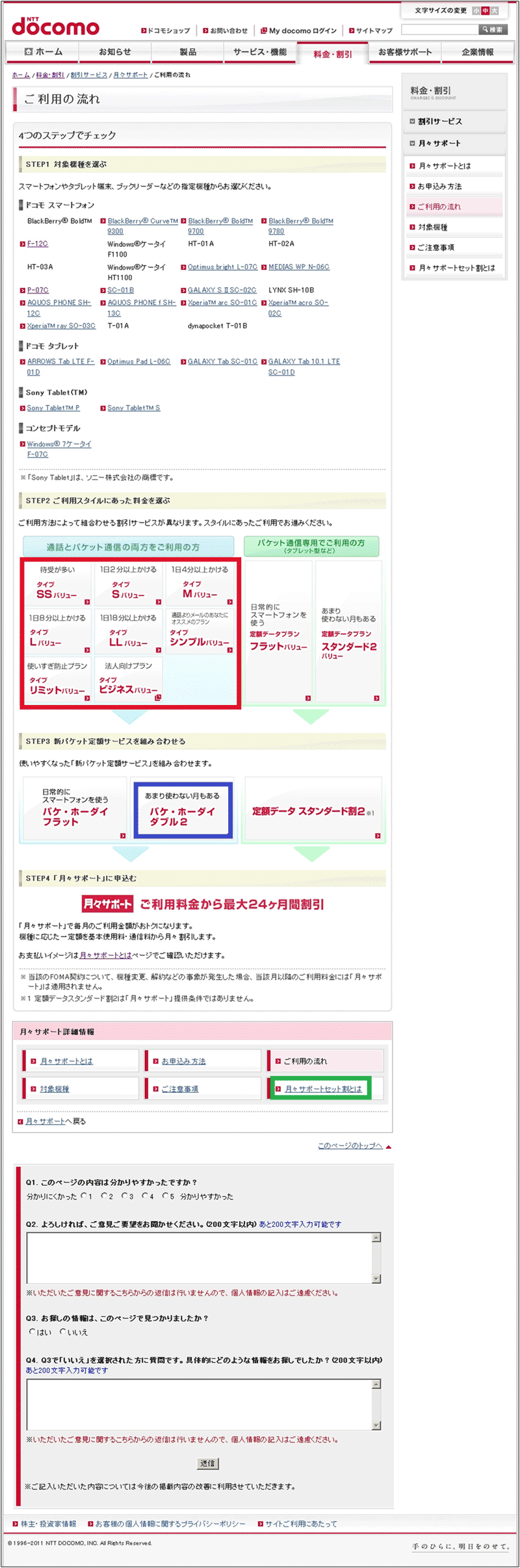 再度図19の「月々サポート」のページに戻り「ご利用の流れ」(図19茶色の枠で囲んだ部分)をクリックしてみる。これが図21だ。