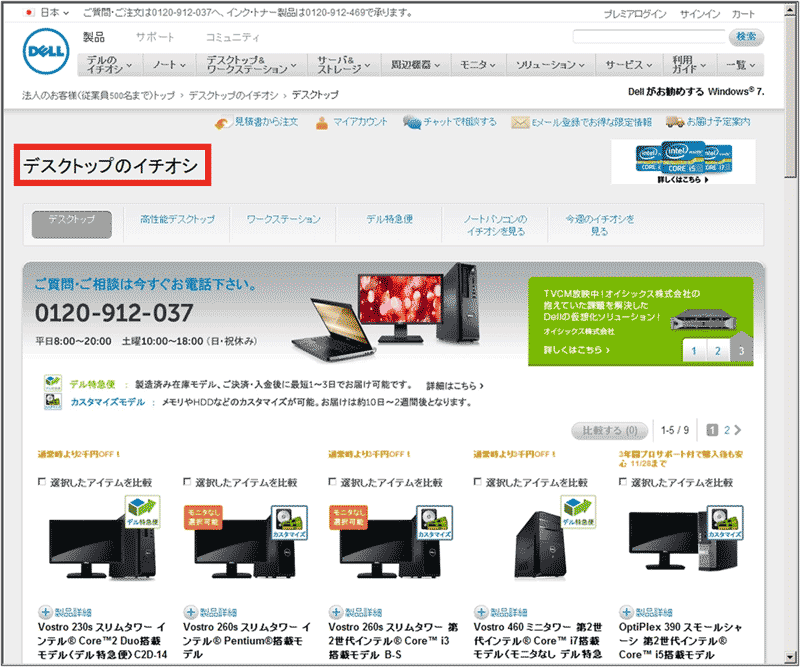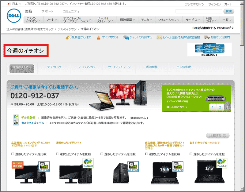 そして、下の図3は「Google」に表示されたデルの検索連動型広告のランディングページで、図4は「Yahoo! JAPAN」に表示されたデルの検索連動型広告のランディングページだ。一見同じに見えるが、よく見比べていただくと、じつは見出しや製品のラインナップが、微妙に異なっていることに気づくだろう(図3、図4の赤枠で囲んだ部分)。