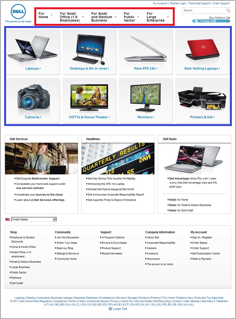 デルのような多くの国にグローバル展開している企業にありがちなのは、Webサイトが全世界共通のデザインやナビゲーションとなっていることだ。そこで、米国本家のサイトである「Dell.」のトップページも確認してみた。それが図6だ。