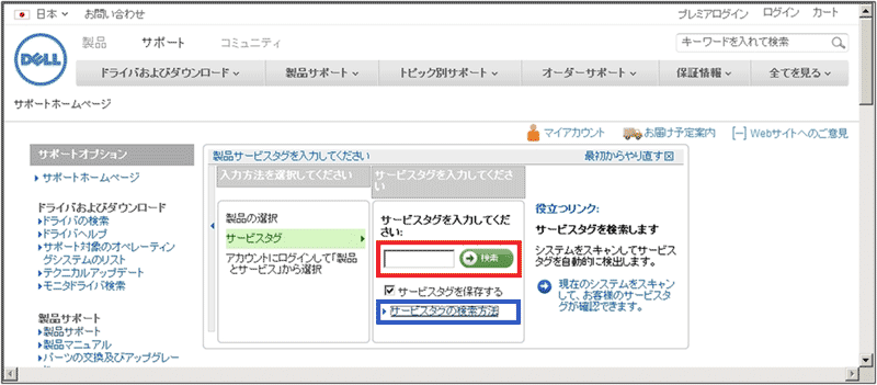 さて、この「サービスタグ」とは何だろう? そのような疑問を持つ人も多いようで、ちゃんと入力ボックスの下には、「サービスタグの検索方法」というリンクが用意されている(図10の青枠で囲んだ部分)。サービスタグとは何なのか、これをクリックすれば確認してみることができる。