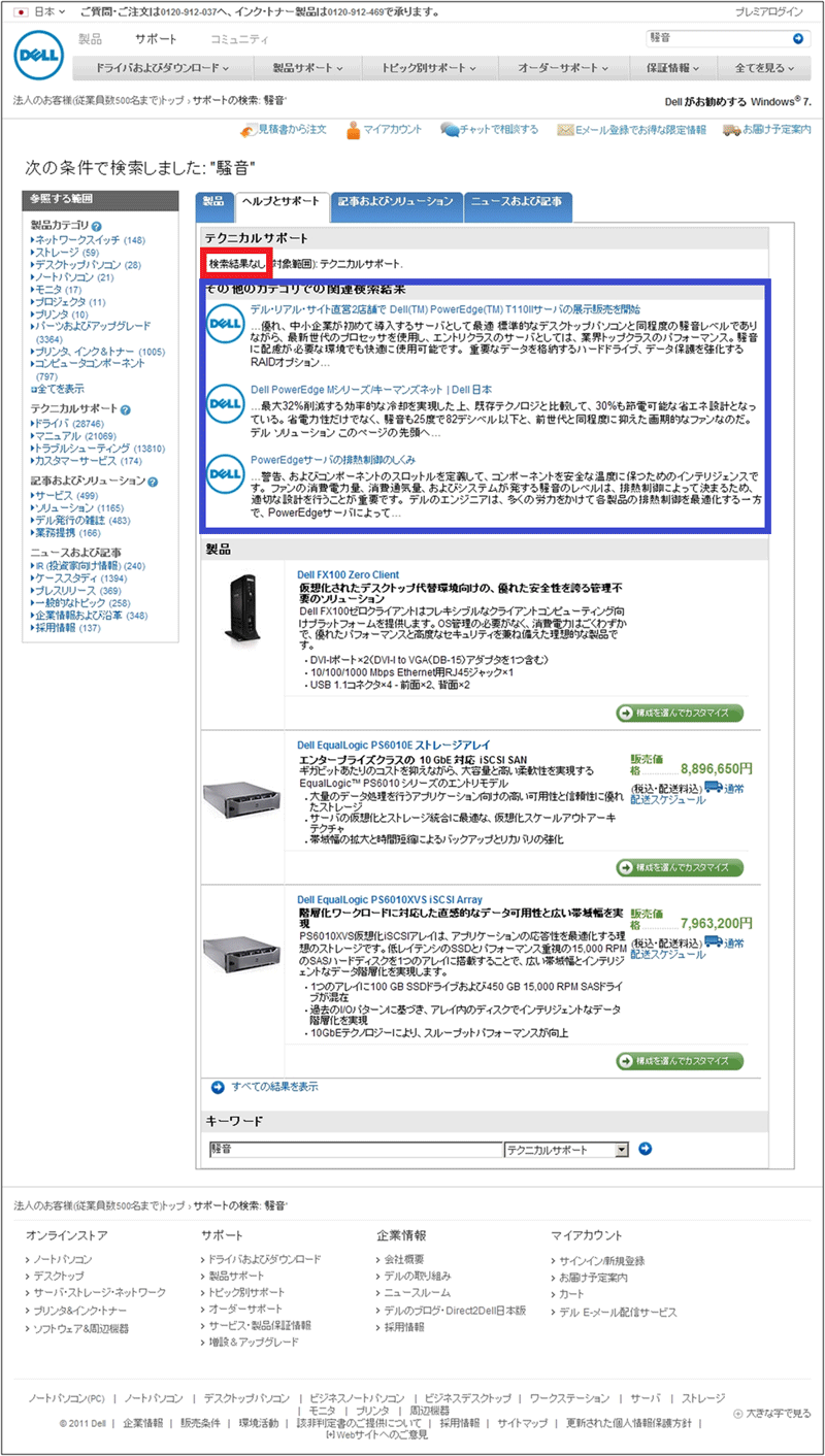 今回は、筐体から発生する騒音について調べたいので、まず「騒音」というキーワードで検索してみた。図13がその結果ページだ。