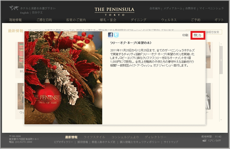 流れている「最新情報」のうちの1つ、「ツリー・オブ・ホープ」をクリックしたページが、下の図4だ。「最新情報」のページがいったん開いたのち、その中の「ツリー・オブ・ホープ」の枠が重なるように自動的に開く仕組みになっている。