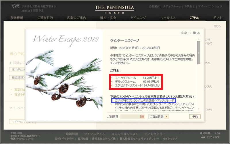 不思議に思いつつ、一番上の冬季限定宿泊プラン「ウィンター・エスケープ」(前ページ図10の青枠で囲んだ部分)をクリックしてみた。それが図11だ。