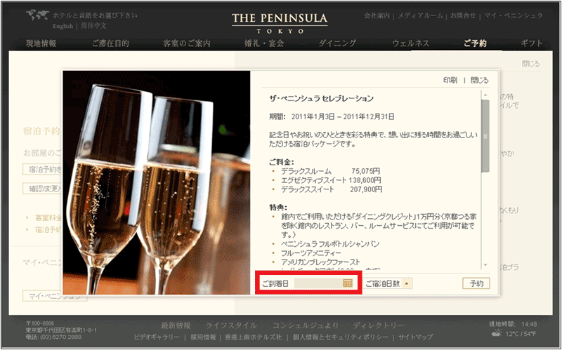 という4つのプランがあった。今回は、年間を通しての通常プランと思われる「ザ・ペニンシュラ セレブレーション」(上から2つ目)をクリックしてみよう。それが図12のページだ。