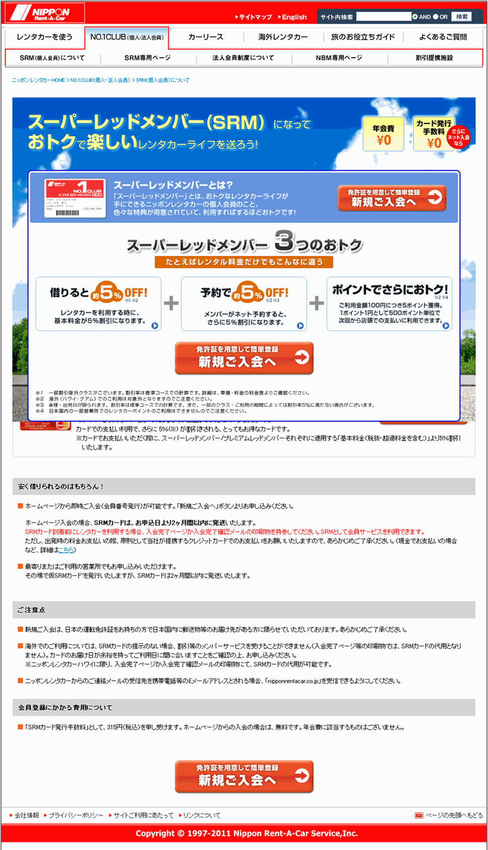 まず新規会員登録をしよう。右側にある「会員窓口」の「個人のお客さま」のカテゴリーのところにある[新規会員登録]ボタンをクリックすると、「SRM(個人会員)について」のページが表示される(図4)。