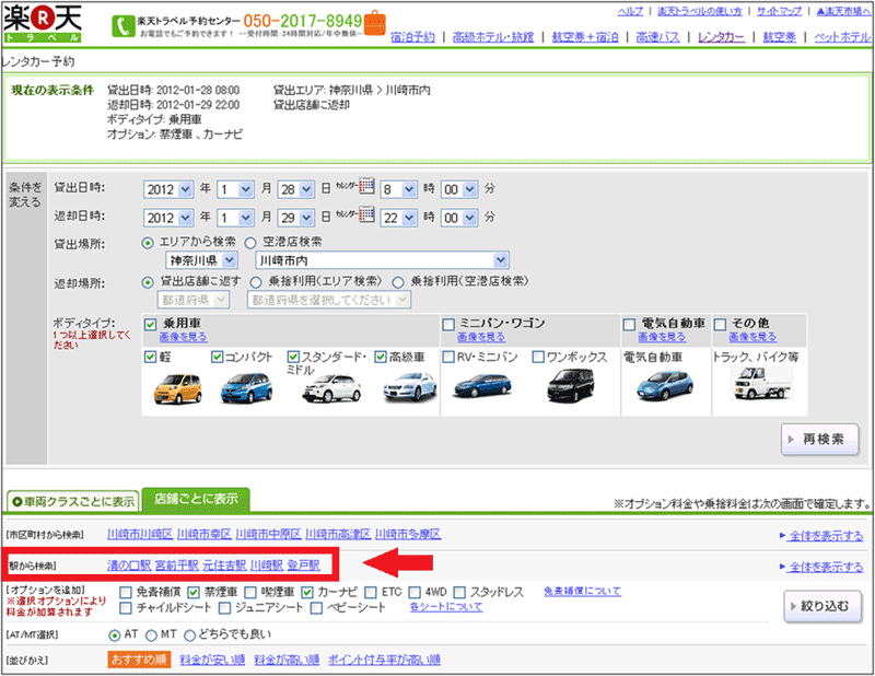 川崎市全体の検索結果ページ全体の最安値が9,450円だったので、それに比べると、絞り込んだあとの最安値13,020円はけっこう高い。家から営業所への近さと天秤に掛けるところだ。