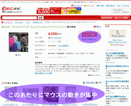 この結果をヒートマップで確認すると、従来のショップ誘導ボタンでの誘導が減ることなく、関連商品へのマウスの動きも増えており、目論見があたっていることを確認できました。