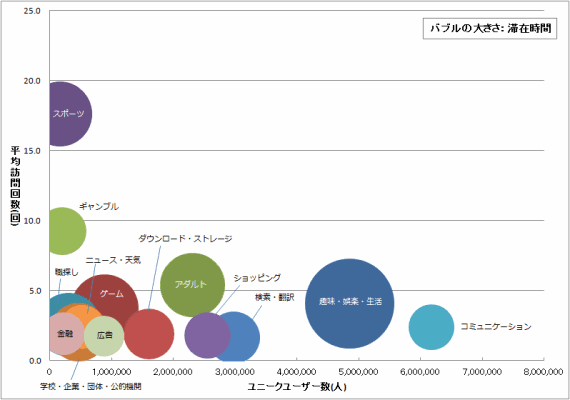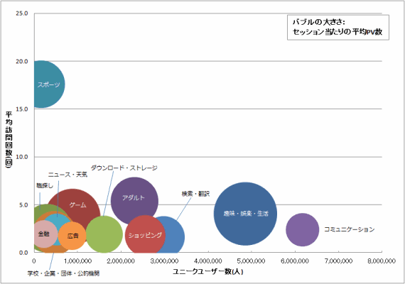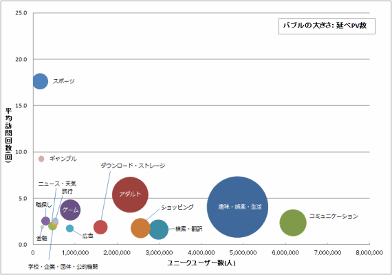 | カテゴリー | ユニークユーザー数(人) | 平均訪問回数(回) | 延べPV数(PV) |