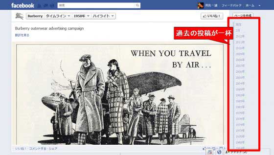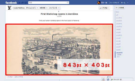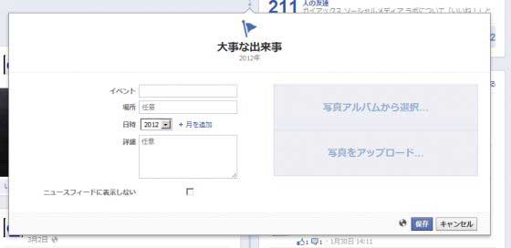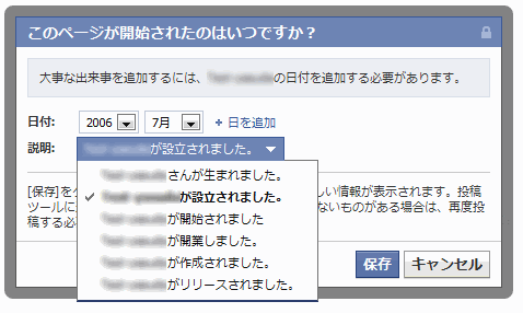 ユーザーのタイムラインと同様に、Facebookページにも、過去の大事な出来事を登録できます。