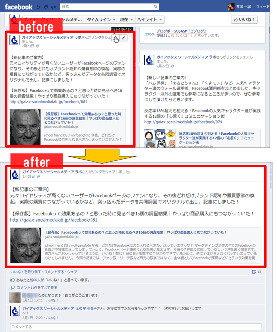16 タイムラインの投稿内容をトップ表示・ハイライト表示する